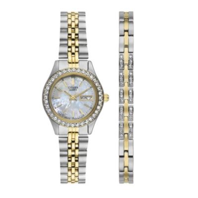 Image Name: Citizen Ladies' Two Colour Stone Set Watch & Bracelet Set - Product ...